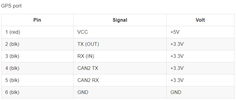 飞控是整个系统的控制核心。其所有端口的 Pinouts 如下图所示: