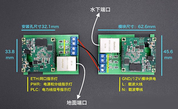 选用的电力线载波通信模块使用非常方便,不需要做复杂的初始化设置。两块电力线载波通信模块的接线方法如下图所示。